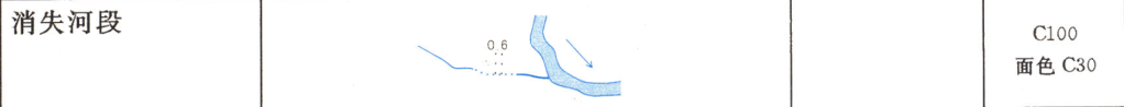 今天给大家分享的是渐变符号的制作方法,以渐变点划线为例,演示渐变符号与点划线符号在illustrator中的绘制方法。这个符号在地图上不太普遍,主要出现在我国西部有些省份(如甘肃),荒漠地区有时会有出现消失的河流,在地图上其符号表现是点划线,同时还需要有河流渐变(从细到粗)的效果,如下图地图图式所描述的。