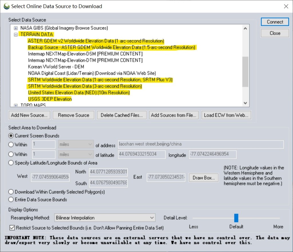 全球DTM覆盖范围(黄色代表1米覆盖,蓝色代表6米覆盖,红色代表10米覆盖)