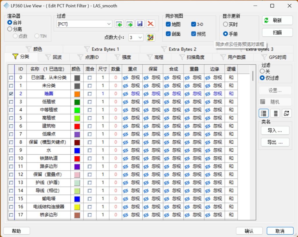 从点云中的地面点导出的正确地形模型是上述大多数应用的基础。TerraScan可以利用全波形信息来过滤掉地面,例如通过提取初始点云不提供地面点的区域中的附加点,或者利用返回的特征来改善自动地面分类结果。