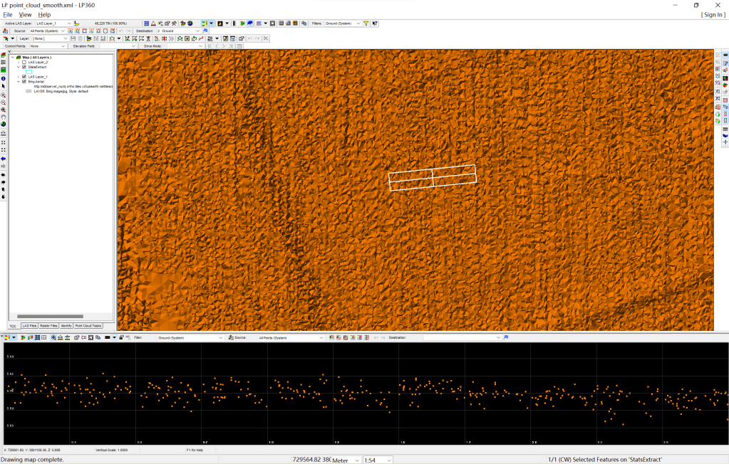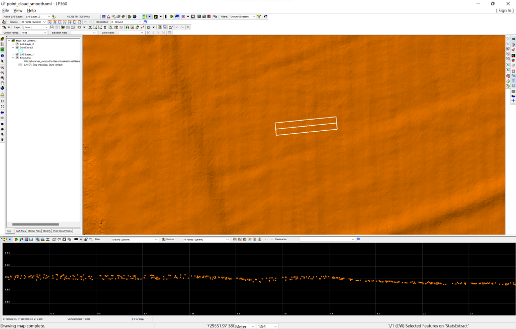 Smoothing Point Cloud (平滑点云) | 高级版 无人机版 | v2020.1 | 点云数据平滑 与来自 Riegl 的高端测量级 LIDAR 相比,使用“汽车级”激光扫描仪的无人机 LIDAR 系统会产生“噪声”。这种噪声现象的一部分是由紧密的点间距(Nominal Point Spacing 或 NPS)引起的错觉。相距较近的点之间的微小高程差异比稀疏间隔点的相同高程差异更明显(并且令人反感)。也就是说,这些扫描仪比测量等级系统噪音更大。 |